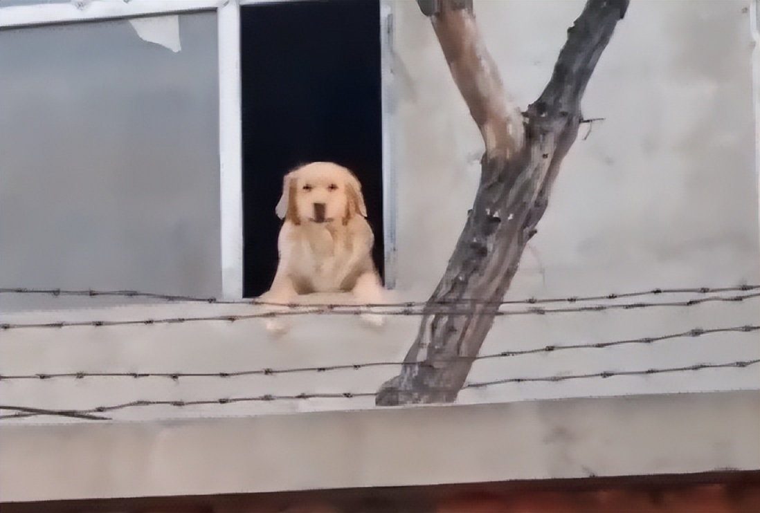 2018年,小哥刚换了新工作,某天在上班的路上,他发现路边小楼二层的窗口探出一个狗头,似乎有点落寞。